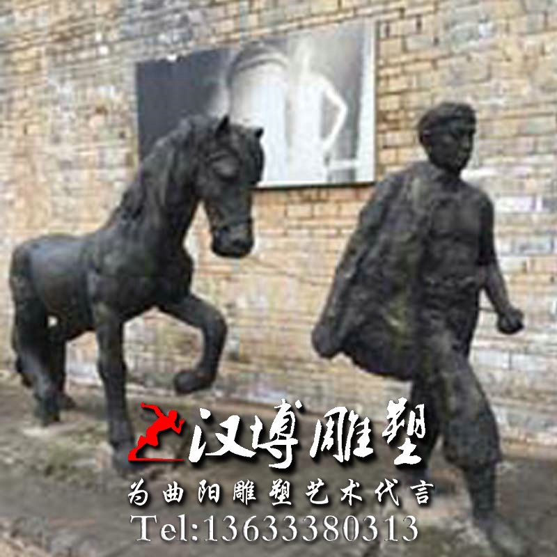 名称:民俗民风雕塑 玻璃钢牵马人物小品铸铜雕塑 城市公园马场景观雕塑