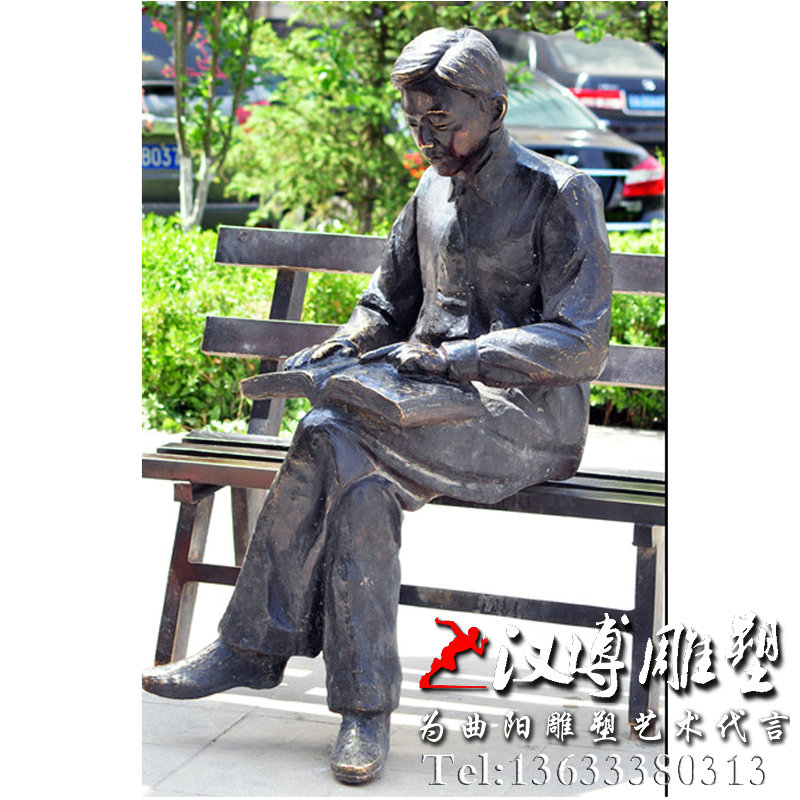 名称:玻璃钢人物雕塑_读书人物座椅雕塑_看报人物雕塑{汉博雕塑公司}