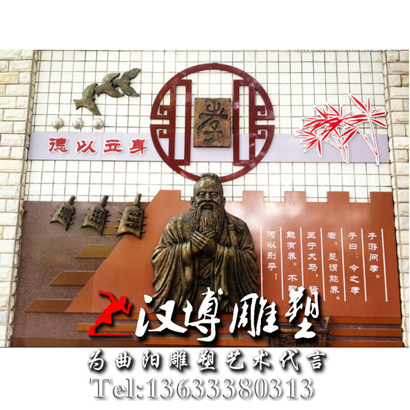 名称:铸铜 古代名人铜像 玻璃钢仿铜孔子雕像 校园文化浮雕墙 教育家铜雕